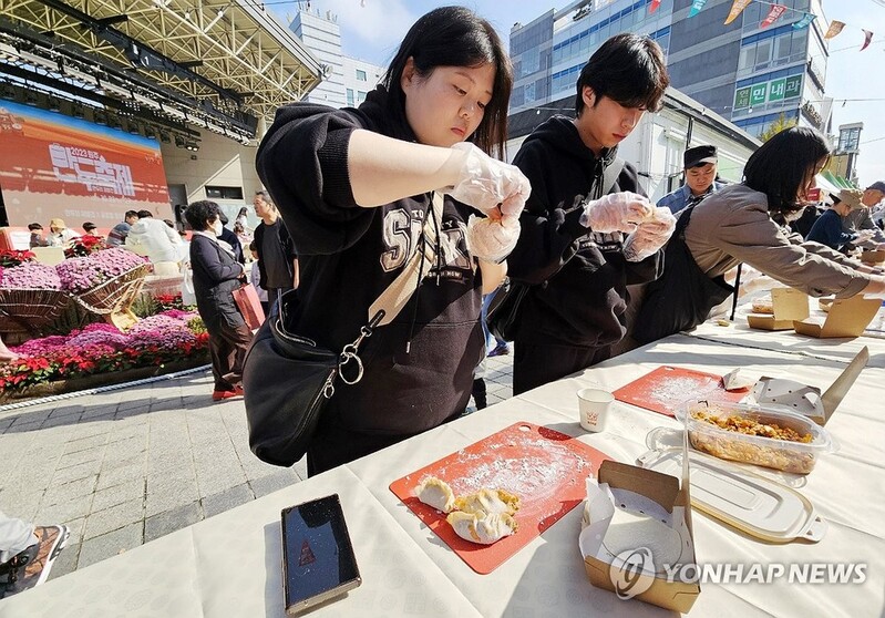 빨리빚기·먹기 대회 이색경연 눈길…반죽 놀이 등 가족 대상 행사 다채