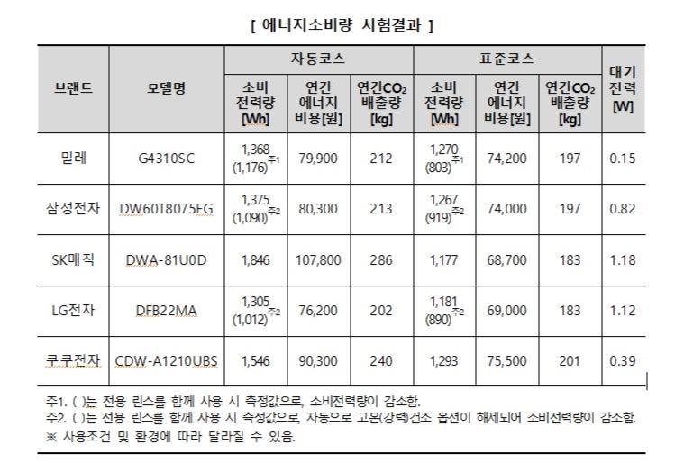 | ▲ 식기세척기 에너지 소비량 [한국소비자원 제공. 재판매 및 DB 금지] |