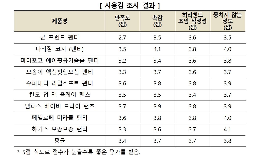 | ▲ 사용감 조사 결과 [한국소비자원 제공. 재판매 및 DB 금지] |