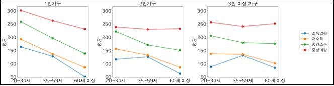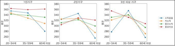 분석 결과 연령(청년·중장년·고령층)과 소득 수준(소득 없음·저소득·중간소득·중상이상), 가구원 수(1인 가구·2인 가구·3인이상가구)에 따라 나눈 전체 계층 유형 가운데 소득이 없는 중장년층 1인 가구의 경제적 어려움이 특히 큰 것으로 나타났다.
