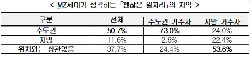 | ▲ MZ세대가 생각하는 '괜찮은 일자리' 지역 [경총 제공. 재판매 및 DB 금지] |