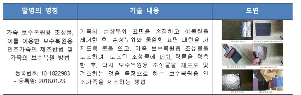 | ▲ 인조가죽 특허출원 사례 [특허청 제공. 재판매 및 DB 금지] |