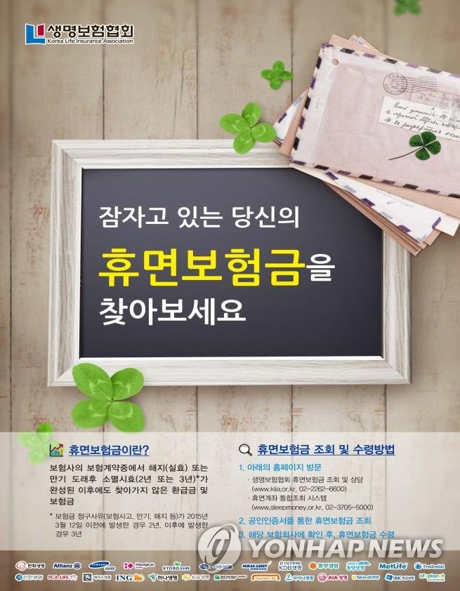 | ▲ 생명보험협회, 휴면보험금 안내 포스터 [생명보험협회 제공=연합뉴스] |