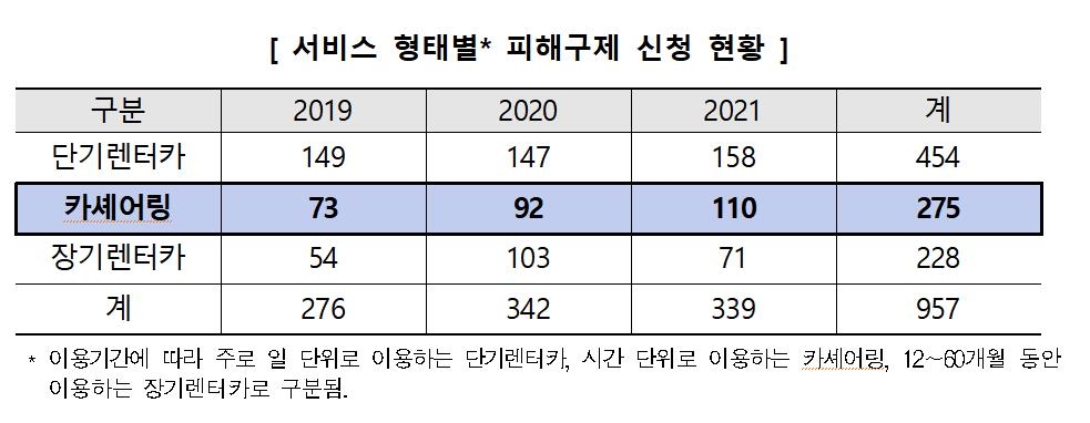 소비자원, 3년간 렌터카 피해구제 957건 분석