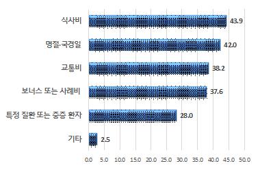 추가 요금 명목은 식사비가 43.9%(복수응답)로 가장 많았고, 명절·국경일 추가 요금(42.0%), 교통비(38.2%) 등의 순이었다.