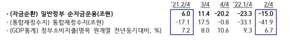 문 팀장은 "방역과 추가경정예산(추경) 등으로 정부 지출이 늘어 정부의 자금 운용 상태가 순운용에서 순조달로 전환됐다"고 분석했다.