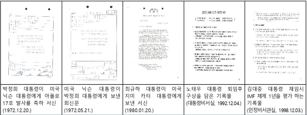 이 밖에도 미국 아폴로 17호 우주선이 달 착륙에 성공한 직후인 1972년 12월20일 박정희 당시 대통령이 리처드 닉슨 당시 미국 대통령에게 보낸 축하 서신도 새로 공개됐다.