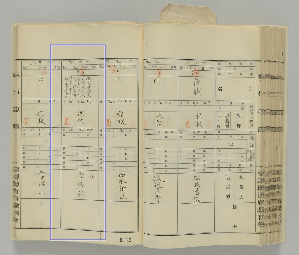 ▲ 이육사 시인이 조선은행 폭파사건에 연루돼 체포됐을 당시 처분 결과를 기록한 '집행원부'. 대구지방법원 검사국이 경찰에서 접수한 피의자들의 처분 결과를 정리한 것으로, 본명 이원록이라는 이름으로 기록돼 있다. [국가기록원 제공]