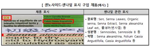 | ▲ 센노사이드·센나잎 표시 구입 제품(예시) [한국소비자원 제공. 재판매 및 DB 금지] |