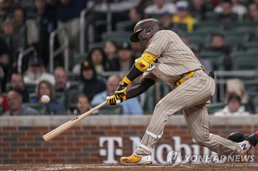 | ▲ 김하성의 골프 스윙 홈런 김하성이 10일(한국시간) 미국 조지아주 애틀랜타의 트루이스트파크에서 열린 2023 MLB 애틀랜타 브레이브스와 방문 경기 6-0으로 앞선 5회초 1사 3루 기회에서 낮은 변화구를 골프 스윙으로 공략해 홈런을 때리고 있다. [USA투데이/로이터=연합뉴스] |
