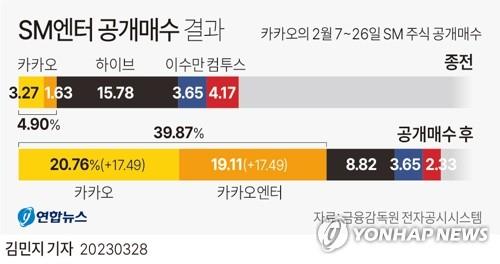 앞서 카카오와 카카오엔터테인먼트는 지난달 SM엔터테인먼트의 주식 공개매수로 총 39.87%의 지분을 확보해 최다 출자자에 오른 바 있다.