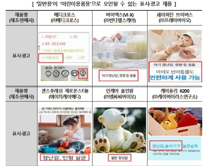 또 일반용 살균소독제인데도 장난감 등 어린이용품에 사용해도 되는 것처럼 표시한 제품도 있었다.