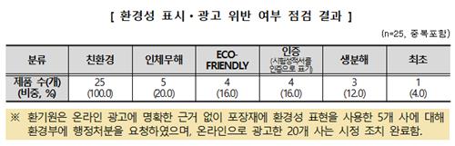 | ▲ 환경성 표시·광고 위반 여부 점검 결과 [한국소비자원 제공. 재판매 및 DB 금지] |