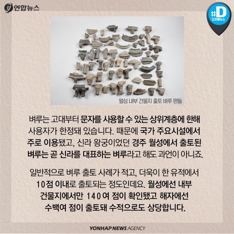 일반적으로 벼루 출토 사례가 적고, 더욱이 한 유적에서 10점 이내로 출토되는 정도인데요. 월성에선 내부 건물지에서만 140여 점이 확인됐고 해자에선 수백여 점이 출토돼 수적으로도 상당합니다.