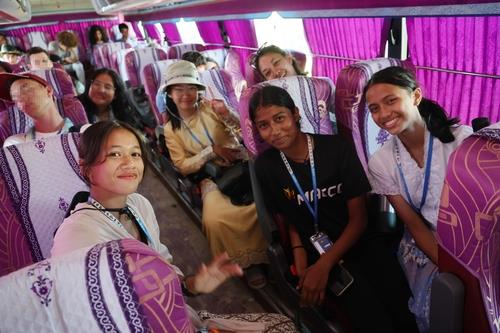 | ▲ Participants at the World Scout Jamboree pose for a camera in a cooling bus at the campground in Saemangeum, southwestern South Korea, on Aug. 7, 2023. (Yonhap) |