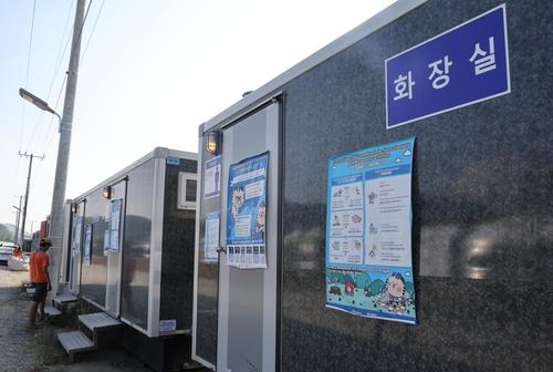 | ▲ Container toilets installed at the World Scout Jamboree campground in Saemangeum, southwestern South Korea, on Aug. 7, 2023. (Yonhap) |