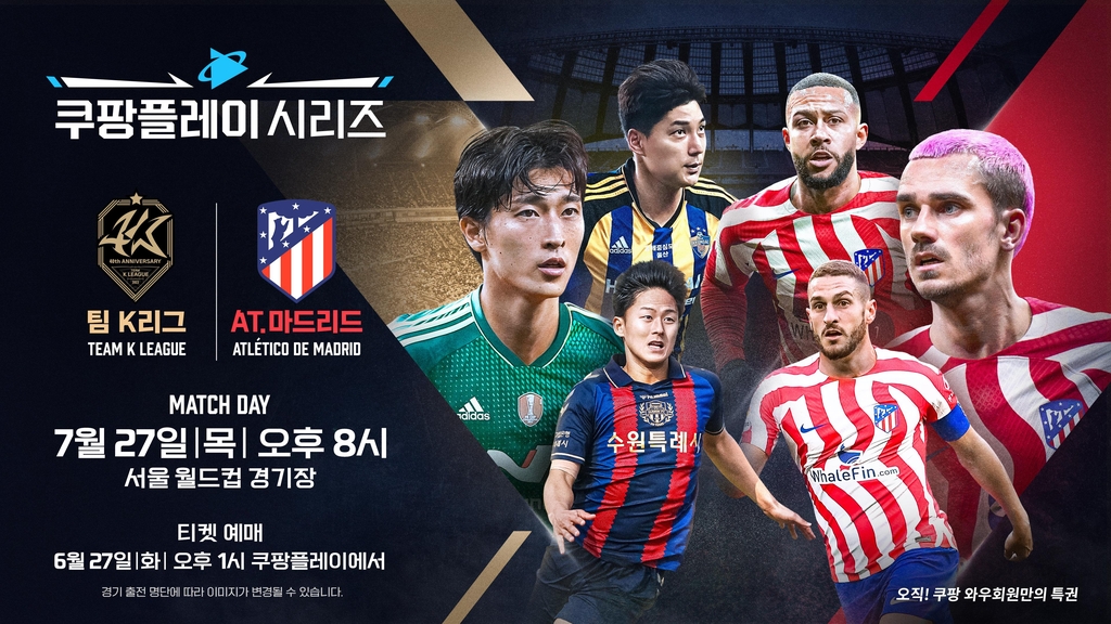 한국프로축구연맹은 내달 27일 오후 8시 서울월드컵경기장에서 열리는 쿠팡플레이 시리즈 1차전 아틀레티코 마드리드와의 경기에 출전할 팀K리그 선수단 22명 중 11명을 팬투표로, 11명을 코칭스태프 선발로 구성한다고 27일 발표했다.
