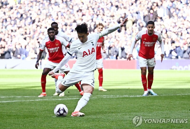 | ▲ 아스널과의 경기에서 페널티킥 차는 손흥민 [로이터=연합뉴스] |