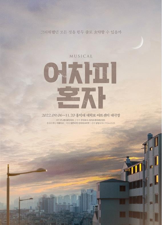 (서울=연합뉴스) 김경윤 기자 = ▲ 뮤지컬 '어차피 혼자' 9월 개막 = 제작사 PL엔터테인먼트는 9월 6일 서울 종로구 홍익대 대학로 아트센터에서 뮤지컬 '어차피 혼자'를 무대에 올린다고 13일 밝혔다.