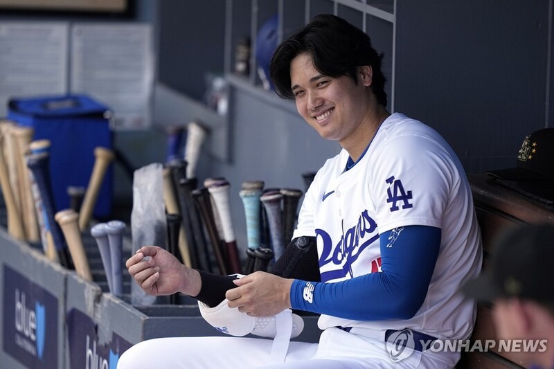 | ▲ 더그아웃에서 미소 짓는 오타니 [AP=연합뉴스] |