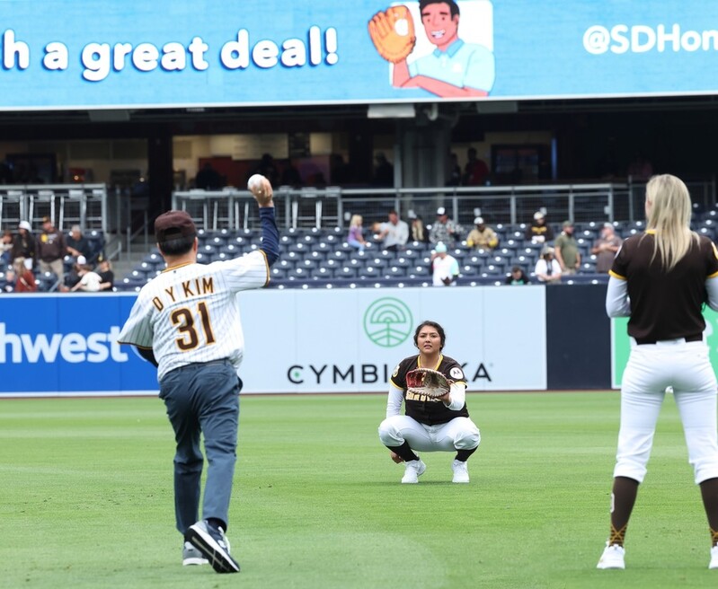 김 지사는 이날 오후 캘리포니아주 샌디에이고 홈구장인 펫코 파크에서 열린 샌디에이고 파드리스와 콜로라도 로키스의 경기에 앞서 시구자로 나섰다.