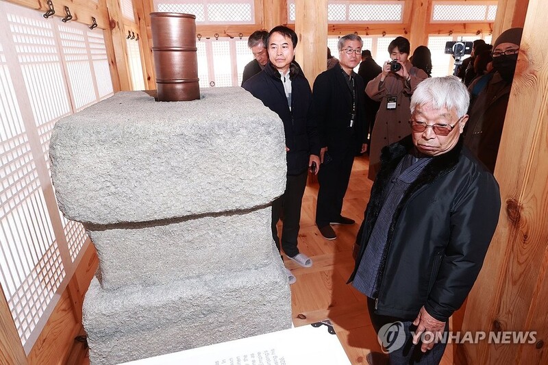 | ▲ 현존 유일의 조선 측우기와 측우대 (서울=연합뉴스) 진연수 기자 = 14일 서울 종로구 경복궁 계조당에서 개막한 '왕세자의 공간, 경복궁 계조당' 전시에서 관람객들이 공주 충청감영 측우기와 관상감 측우대를 살펴보고 있다. 2023.11.4 jin90@yna.co.kr |