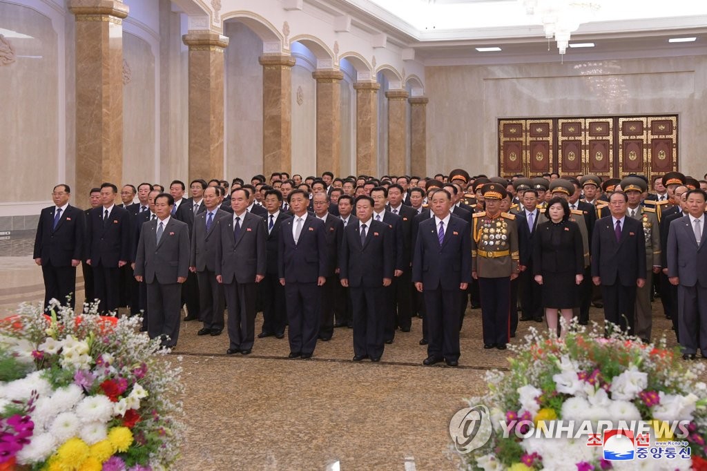 The North's state-run Korean Central News Agency (KCNA) reported Sunday that the country's senior officials visited the Kumsusan Palace of the Sun in Pyongyang the previous day to pay tribute to Kim Jong-il, Kim Jong-un's father who died on Dec. 17, 2011.