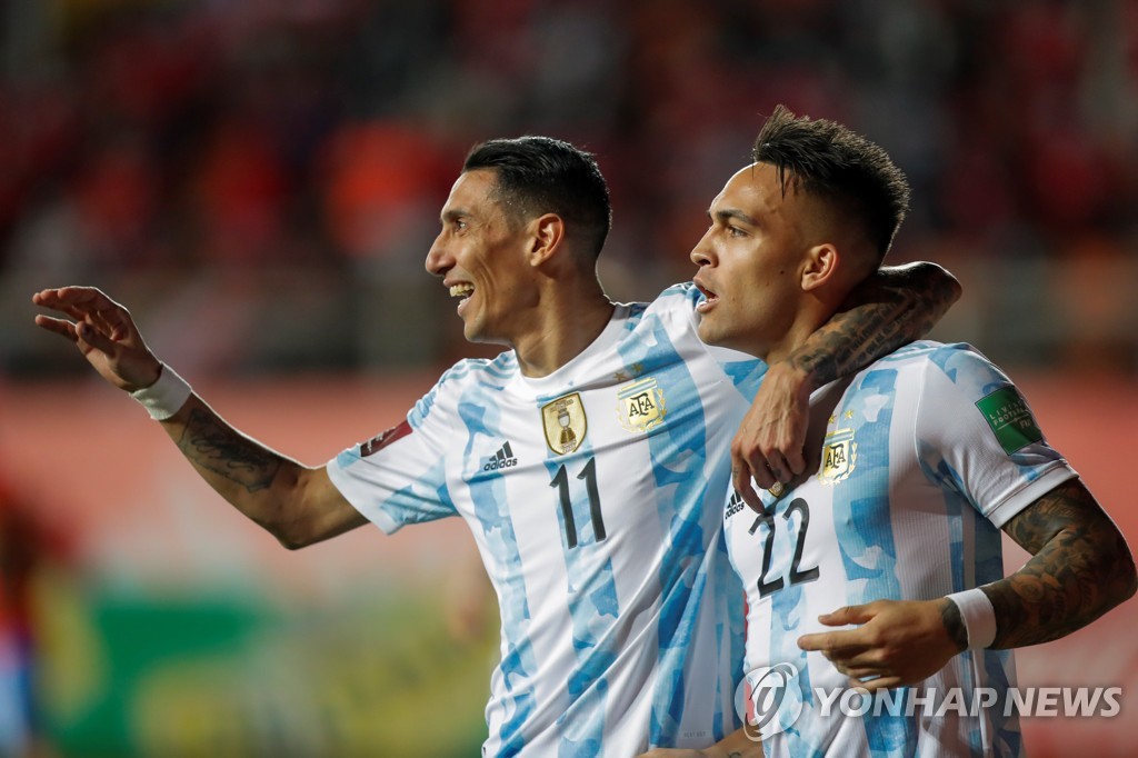 아르헨티나는 28일(한국시간) 칠레 칼라마의 소로스 델 데시에르토 경기장에서 열린 칠레와 카타르 월드컵 남미예선 15차전 원정 경기에서 앙헬 디 마리아와 라우타로 마르티네스의 득점포에 힘입어 2-1로 이겼다.