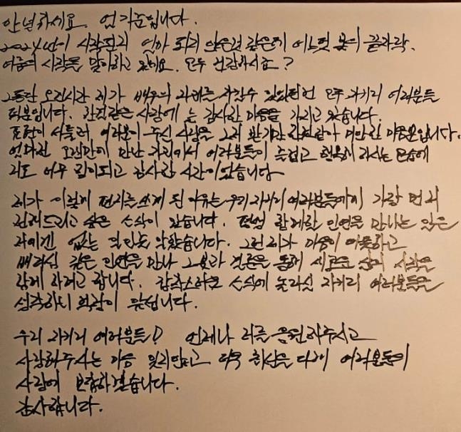 | ▲ 엄기준이 SNS에 올린 자필 편지 [엄기준 인스타그램. 재판매 및 DB 금지] |