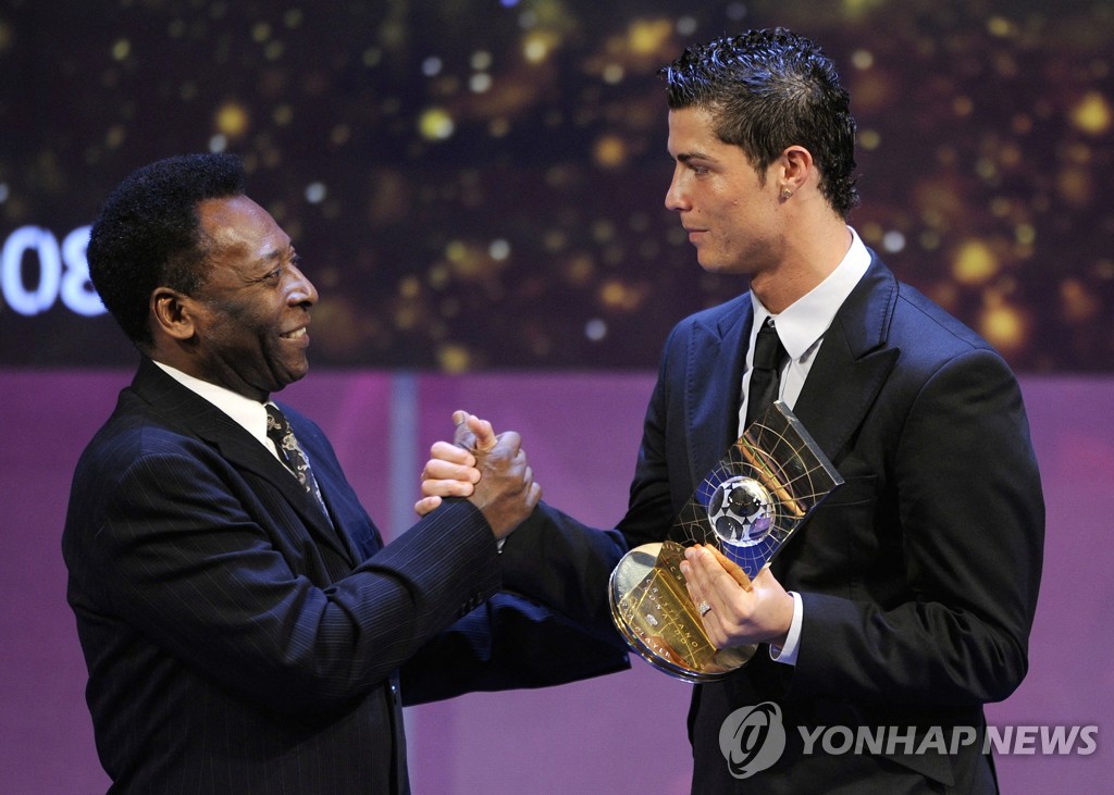| ▲ 2009년 FIFA 시상식 때 호날두 축하하는 펠레 [AFP=연합뉴스 자료사진] |