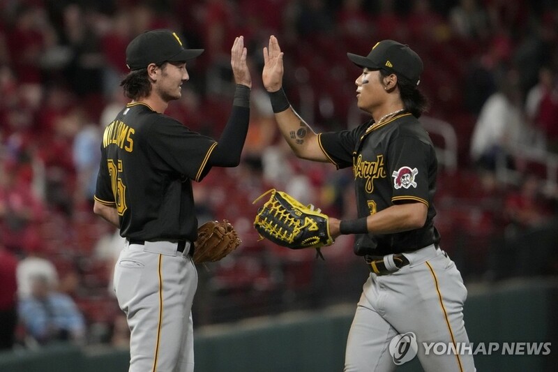 | ▲ 경기가 끝난 뒤 하이파이브하는 배지환(오른쪽) [AP=연합뉴스] |