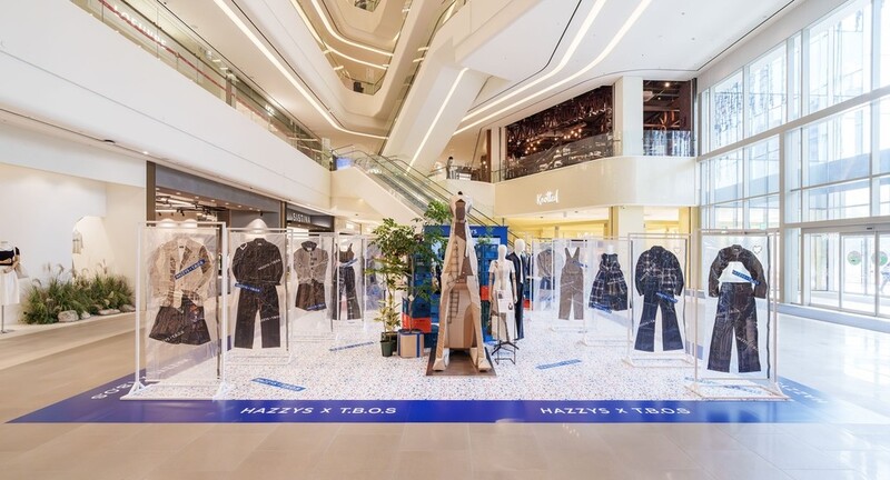 ▲ LF의 대표 브랜드 헤지스(HAZZYS)는 업사이클링(새활용) 디자이너 윤경덕 작가가 이끄는 '티비오에스'(T.B.O.S)와 협업한 컬렉션을 전시하는 팝업 스토어를 다음 달 9일까지 스타필드 수원 1층 그랜드 아트리움에서 진행한다고 24일 밝혔다. 이번 협업 컬렉션은 헤지스의 소각 대상 재고상품을 윤 작가의 시각으로 해체 후 재구성한 아이템 20개로 구성됐다. (서울=연합뉴스)