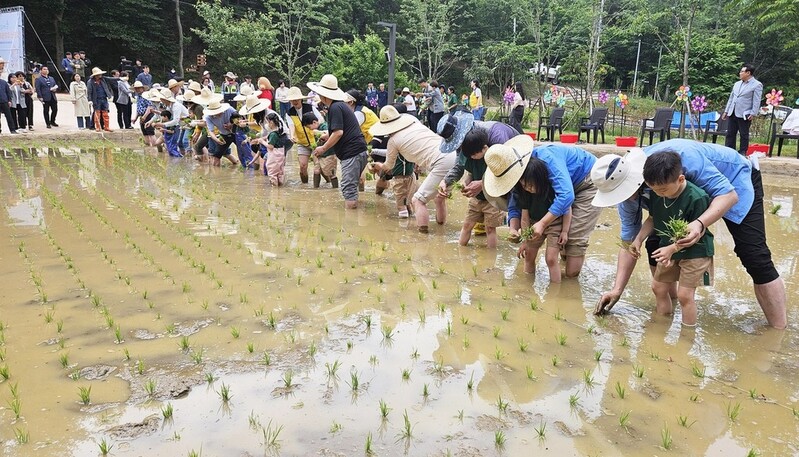 입화산 유아숲체험원 개장 이후 일주일 동안 유치원생과 초등학생을 대상으로 모내기 체험을 운영할 예정이다.