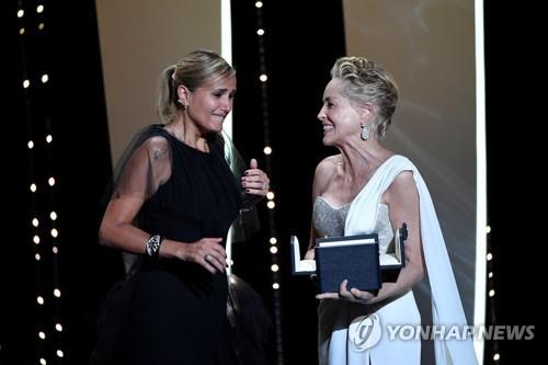 | ▲ 샤론 스톤에게 상 받는 뒤쿠르노 감독 [AFP=연합뉴스] |