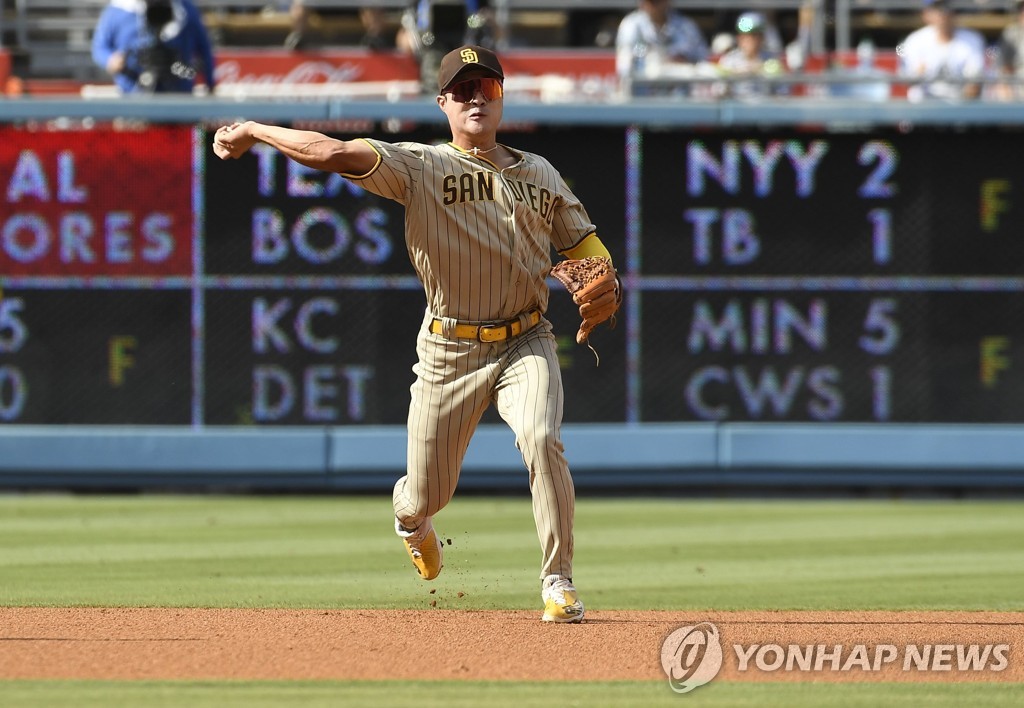 김하성은 5일(한국시간) 미국 캘리포니아주 로스앤젤레스의 다저스타디움에서 열린 2022 미국프로야구 메이저리그(MLB) 로스앤젤레스 다저스와의 방문 경기에 1번 타자 유격수로 선발 출전해 5타수 무안타 3삼진을 기록했다.