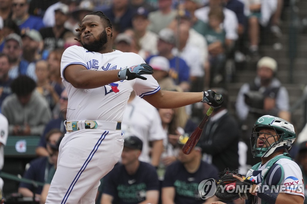 (서울=연합뉴스) 장현구 기자 = '괴수의 아들' 블라디미르 게레로 주니어(토론토 블루제이스)가 미국프로야구 메이저리그(MLB) 올스타전 홈런더비 최초로 아버지에 이어 부자(父子) 홈런왕 등극이라는 진기록을 세웠다.