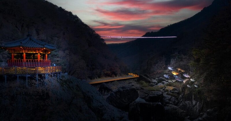경관조명 설치 구간은 운일암반일암 관광지에 있는 1.8㎞의 데크 탐방로다.