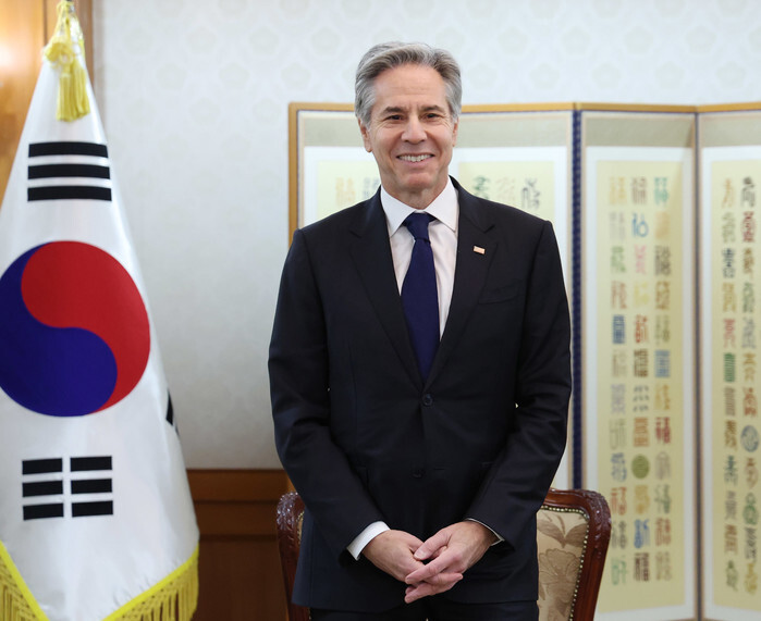 U.S. Secretary of State Antony Blinken is pictured as he meets with South Korean acting President Choi Sang-mok at the government complex in Seoul on Jan. 6, 2025. (Pool photo) (Yonhap)