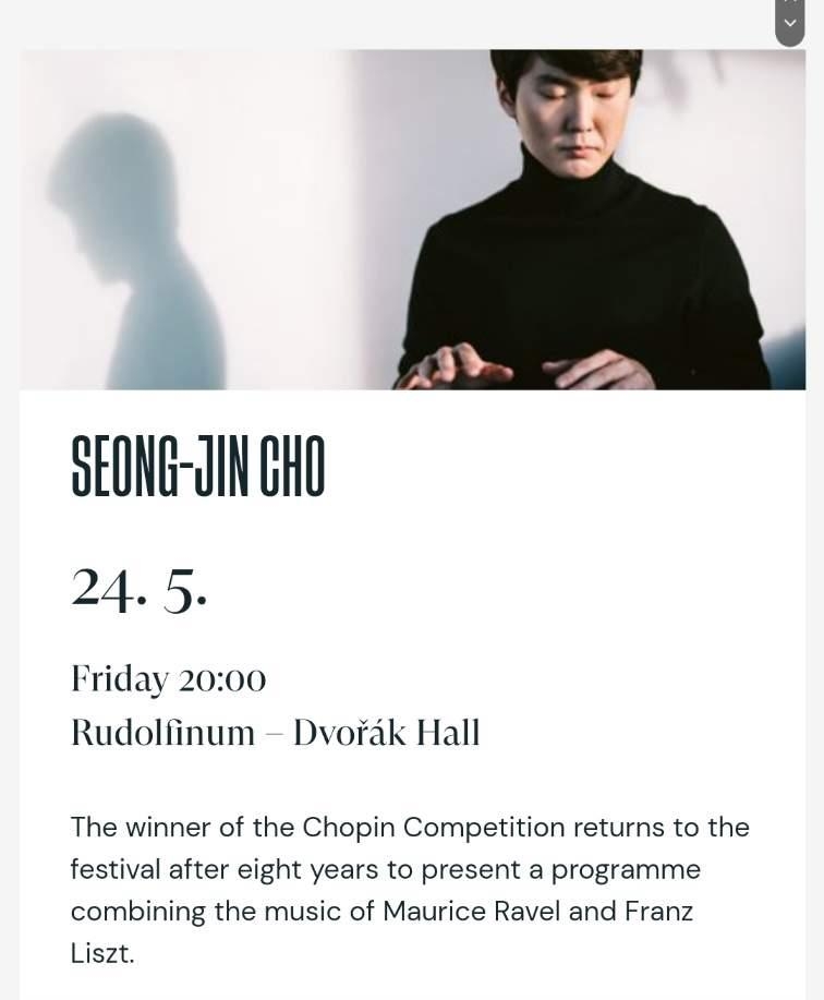 2015년 바르샤바에서 열린 쇼팽 국제 피아노 콩쿠르에서 화려하게 우승한 조성진은 다음 해 5월 '프라하의 봄 국제 음악 축제'를 통해 체코 무대에 데뷔한 인연이 있다.