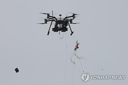| ▲ 드론 잡는 드론 (양주=연합뉴스) 임병식 기자 = 24일 경기도 양주시 광적면 가납리 비행장에서 열린 2024 아미 타이거 드론봇 페스티벌 개막식에서 드론이 그물을 이용해 다른 드론을 포획하는 기능을 시연하고 있다.