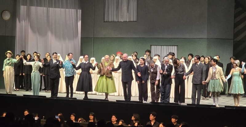 | ▲ 한국 초연 후 무대인사를 하는 '죽음의 도시' 제작진과 출연진 (서울=연합뉴스) 오페라 '죽음의 도시' 제작진과 출연진이 23일 예술의전당에서 첫 공연을 마친 뒤 관객에게 감사 인사를 전하고 있다. 2024.05.23 hyun@yna.co.kr |