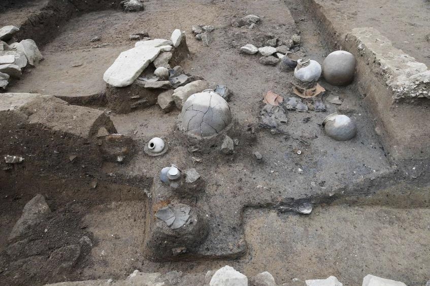 그 주변에서는 납작한 몸체에 다리가 세 개 달린 토기인 삼족기(三足器), 접시 또는 사발에 다양한 형태의 긴 굽을 붙인 고배(高杯), 항아리 등이 출토됐다.