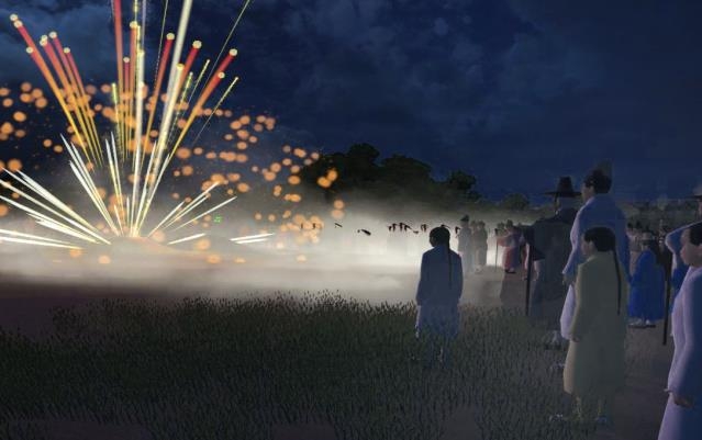 | ▲ 백성들과 함께 관람한 매화포 불꽃놀이를 연출한 장면 [국립고궁박물관 제공. 재판매 및 DB 금지] |