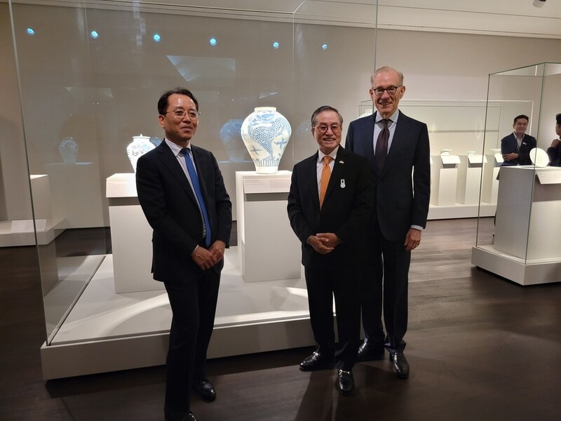 | ▲ 지난 16일 열린 재개관 행사 모습 왼쪽부터 윤성용 국립중앙박물관장, 정영호 주휴스턴총영사, 휴스턴박물관장 [국립중앙박물관 제공. 재판매 및 DB 금지] |