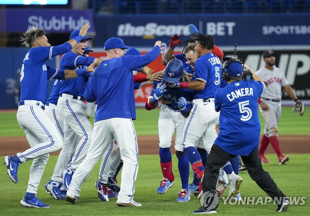 (서울=연합뉴스) 하남직 기자 = 토론토 블루제이스가 끝내기 승리를 거두며 아메리칸리그 동부지구 선두 자리를 지켰다.
