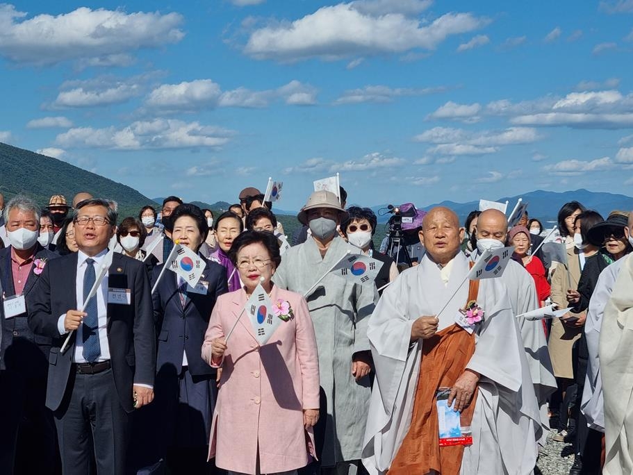 | ▲ 통도사에서 개최한 '제1회 한지의 날' 행사 2022년 10월 10일 경북 양산 통도사에서 개최한 '제1회 한지의 날' 행사. [한지살리기재단 제공] |