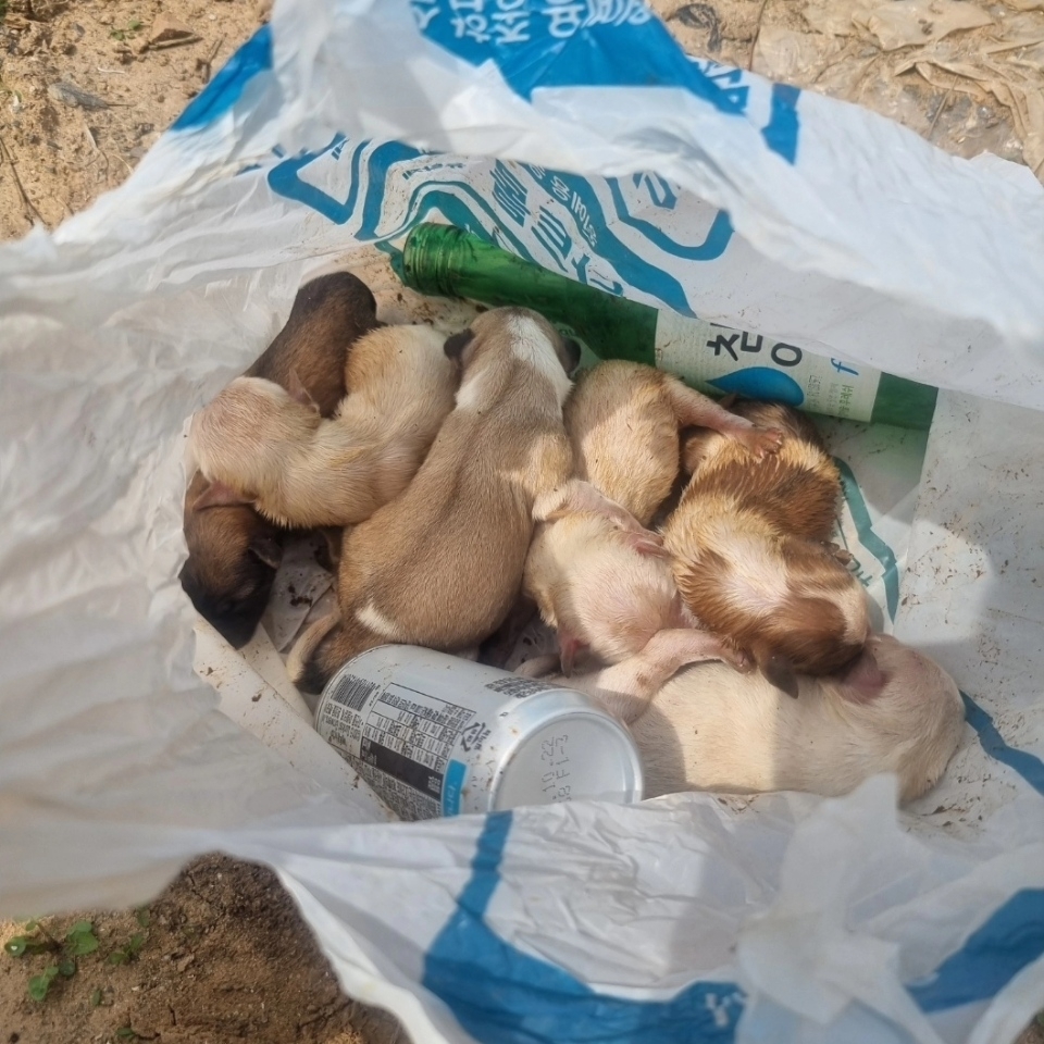 The person found the six pups believed to have been born not long ago, along with an empty soju bottle and a beer can inside the trash bag.