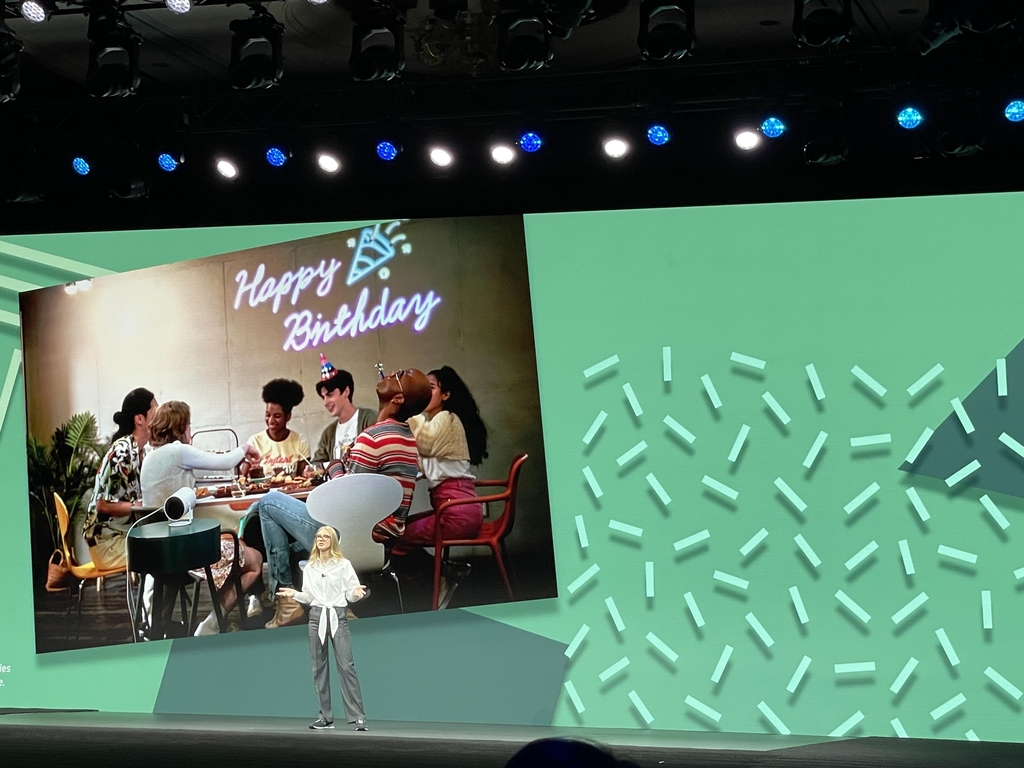 | ▲ 삼성전자 CES 2022 기조연설에서 소개되는 포터블 스크린 '더 프리스타일' [촬영=김영신 기자] |