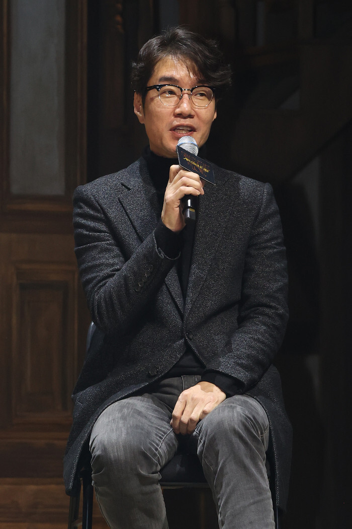 South Korean actor Song Young-kyu speaks during a publicity event for the new musical "Shakespeare in Love" in Seoul on Feb. 7, 2023. The musical opened on Jan. 18 and will run through March 26. (Yonhap)