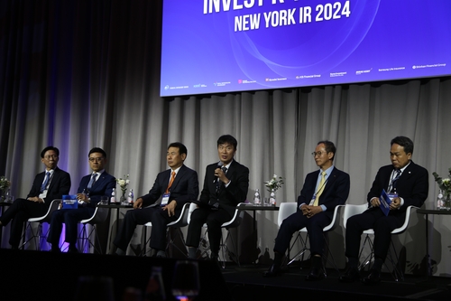 | ▲ Lee Bok-hyun (3rd from R), governor of the Financial Supervisory Service, speaks during a joint investor relations event in New York on May 16, 2024, in this photo provided by the financial regulator. (PHOTO NOT FOR SALE) (Yonhap) |
